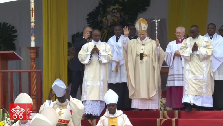 在牧灵访问喀麦隆的第三天,教宗良十四世乘坐专机前往该国的杜阿拉。随后,他在贾波马体育场主持弥撒,有12万信友参与。教宗在讲道指出如何回应物质与精神层面的饥饿,他还劝勉喀麦隆的青年不要灰心,却要“拒绝欺凌和暴力的一切形式,它们看似轻易可以捞到好处,实则使人变的心硬”。