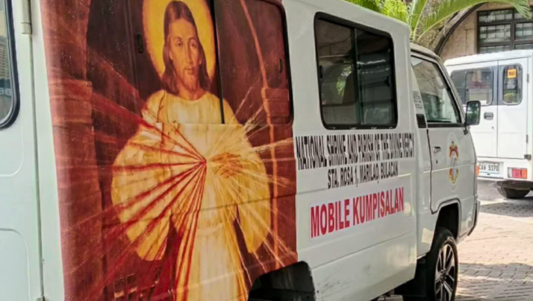 马洛洛斯教区国家神圣慈悲朝圣地于 4 月 8 日启动了“流动告解”活动,首站设在马洛洛斯大教堂。朝圣地主任阿尔文·皮拉神父(Fr. Pila)乘坐一辆绘有天主慈悲圣像的白色面包车,透过车窗为信友们听告解。