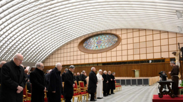 公教新闻 四旬期默想:圣方济各归依福音(3/6/2026) 教宗府讲道神师帕索里尼神父在保禄六世大厅主持四旬期默想,主题为“谁若在基督内,他就是一个新受造物(格后五17)。在圣方济各思想中的归依福音”。
