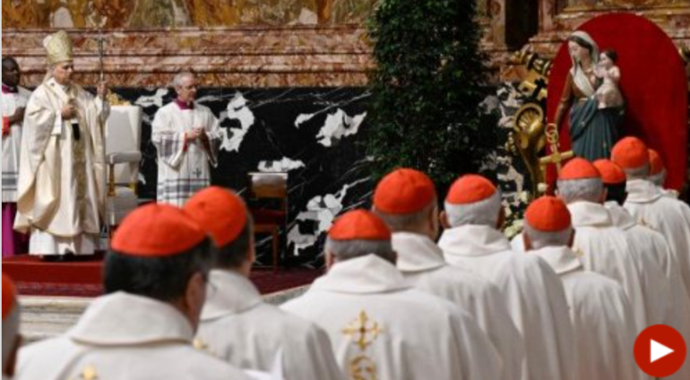 这是教宗良十四世于1月8日早晨在圣伯多禄大殿的宗座祭台前说的一番话。他与出席特别枢密会议的155位枢机在这里举行了共祭弥撒。这次枢密会议于前一天7日下午在世界主教会议厅开启,8日晚上结束,是当今教宗牧职内的第一次。教宗勉励枢机们彼此相爱,“在我们为服事教会而相聚的这个恩宠时刻”,尤其如此。