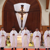 参与弥撒共祭的有文化和教育部秘书长保禄·蒂格主教(Bishop Paul Tighe),以及意大利主教团副秘书长兼国家休闲、旅游和体育牧灵关怀办公室临时主任弥格尔·贾诺拉神父( Father Michele Gianola)。