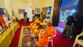 佛教僧侣和信友聚集在一起为教宗的健康祈祷、静默......