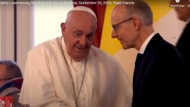 公教新闻 【公教新闻】| 教宗会见卢森堡当局:战争让国家生病,令理性疯狂 9月26日上午,教宗方济各抵达卢森堡后,在环形市政厅(Cercle Cité)会见了当局、公民社会的代表、外交使团,以及文化界和企业界的要人,总共约300人。教宗在这个机会发表的讲话中,发挥了此前拜会亨利大公时在贵宾留言簿上表达的思想:人性尊严、公共利益、国际合作。