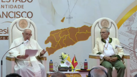 公教新闻 【公教新闻】| 教宗在帝力会见圣职人员、会士和要理教员:抵御“不冷不热的灵性平庸” 教宗在帝力圣母无染原罪主教座堂向主教、司铎、执事、男女奉献生活者、修生及要理教员发表讲话,敦促他们在东帝汶守护和传播福音的馨香。