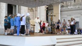 壹明头条 【壹明头条】| 教宗接见七万辅祭员:与耶稣在一起亲近那些受苦和卑微的人 7月30日,教宗方济各接见了来自欧洲20个不同国家的7万名辅祭员。他们穿着各色T恤、举着横幅、旗帜、戴着头巾和帽子,用伞遮挡七月的炎热,在日落时分将圣伯多禄大殿前的广场装点得五彩缤纷。他们来罗马参加国际辅祭员联合会(Cim)组织的第十三届朝圣活动,今年的主题是“与你在一起”。