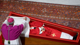 在约 25 万名哀悼者表达哀悼后,教宗方济各的灵柩在圣伯多禄大殿以私人仪式密封。在教宗方济各葬礼弥撒前夕,他的棺材已被庄严地封住。